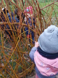 Apprentissages des outils et des gestes, réalisation d’un petit ouvrage avec les éclisses de ronce.