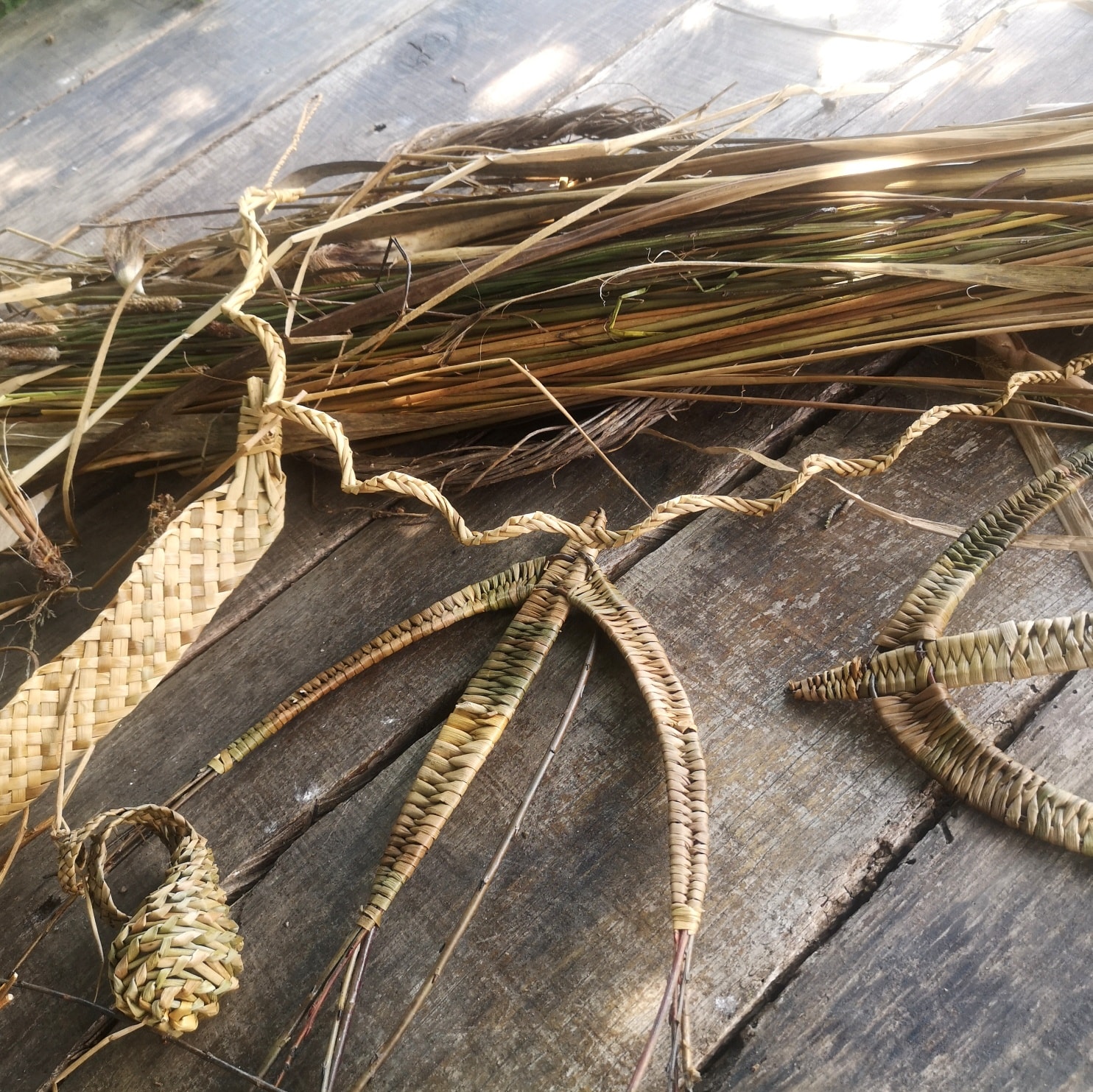 Fabrication de petits objets pour apprivoiser différentes techniques de tissage avec des plantes locales.