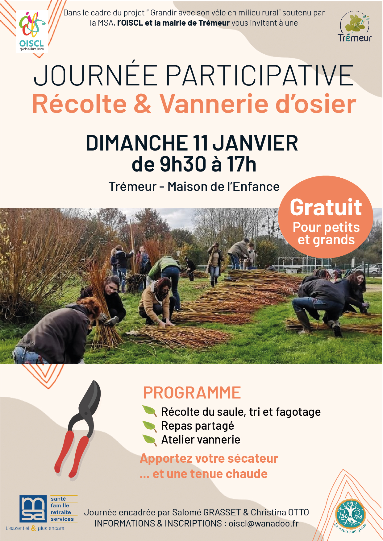 De la récolte au tressage, venez participer à cette journée de rencontres où vous apprendrez le travail de la récolte et du tri de l’osier, suivi d’un temps de création.